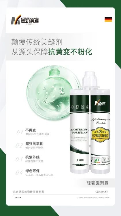轻奢瓷聚脲采用高科技的新材料,各项性能都比普通美缝要强,附着力更强,更加牢固,与瓷砖壁牢牢粘合在一起,防止油污、水渍渗入到瓷砖缝隙中。防污防霉,超强粘结力,不易开裂和黄变。将空间提升到更高的境界,展现出精致细腻、奢华雅致的生活品位,让每一刻都沉浸在轻奢的魅力中。