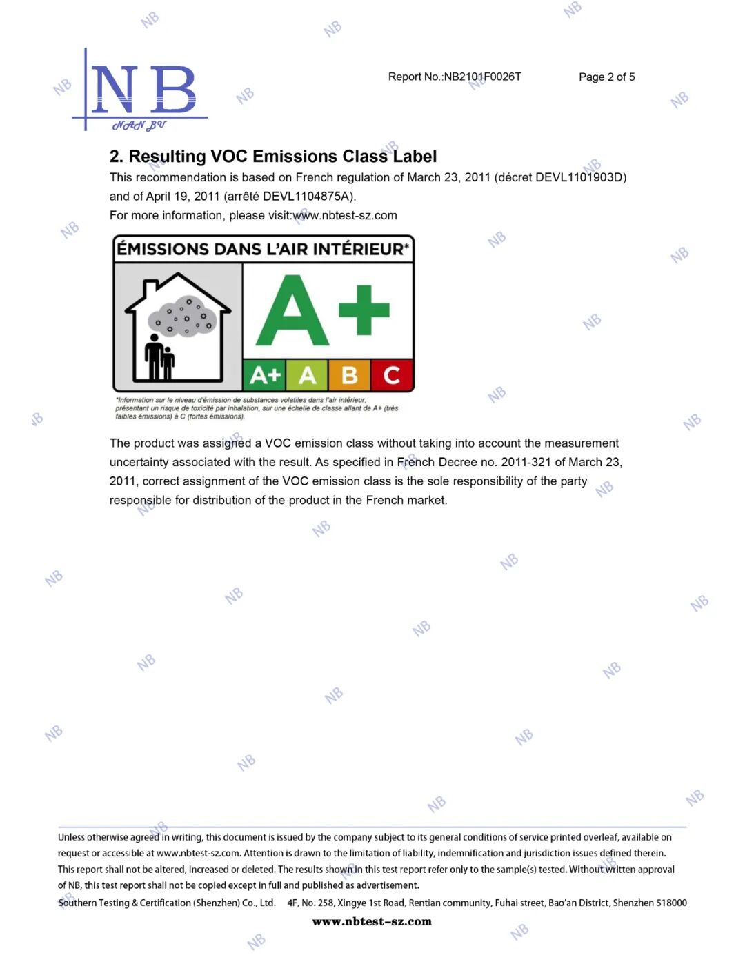 法国A+环保认证